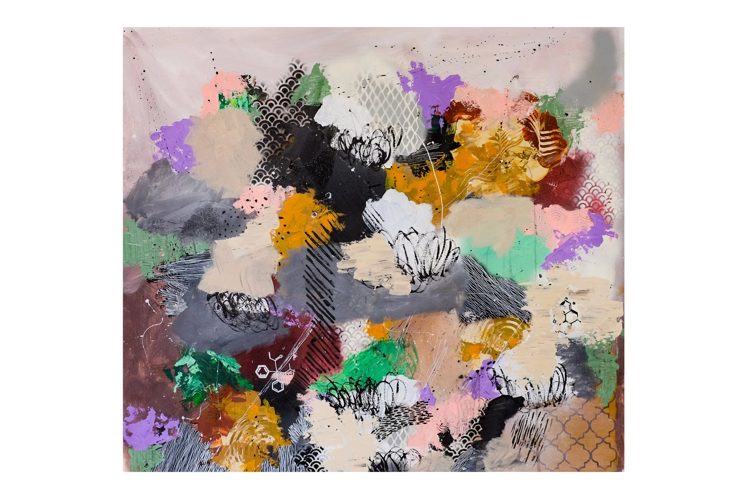 32"x32" Mixed media on gesso primed canvas